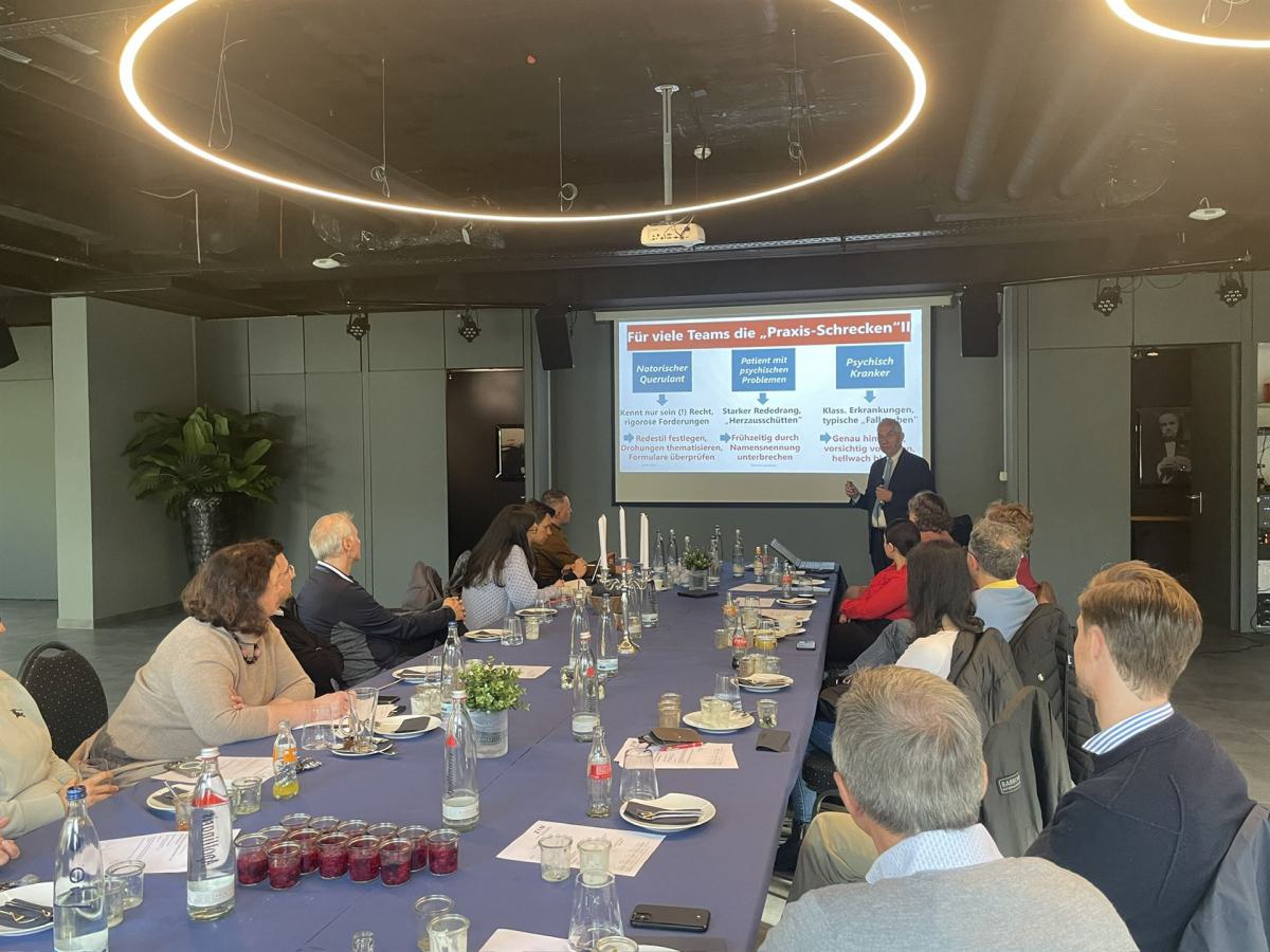 Im Anschluss erfolgte eine "Round- Table Diskussion" moderiert von unserem Mitglied Dr. Dr. Thomas Lange, niedergelassener Mund-, Kiefer-, und Gesichtschirurg.